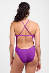 The Brandon is one of our all-time favs. This adjustable one piece swimsuit has a continuous band across the back for optimal fit and tension. The higher neckline offers extra coverage for the torso and the rounded shape helps you stay flat and sleek in the water. Plus, the single binding loop is a subtle touch that we adore.