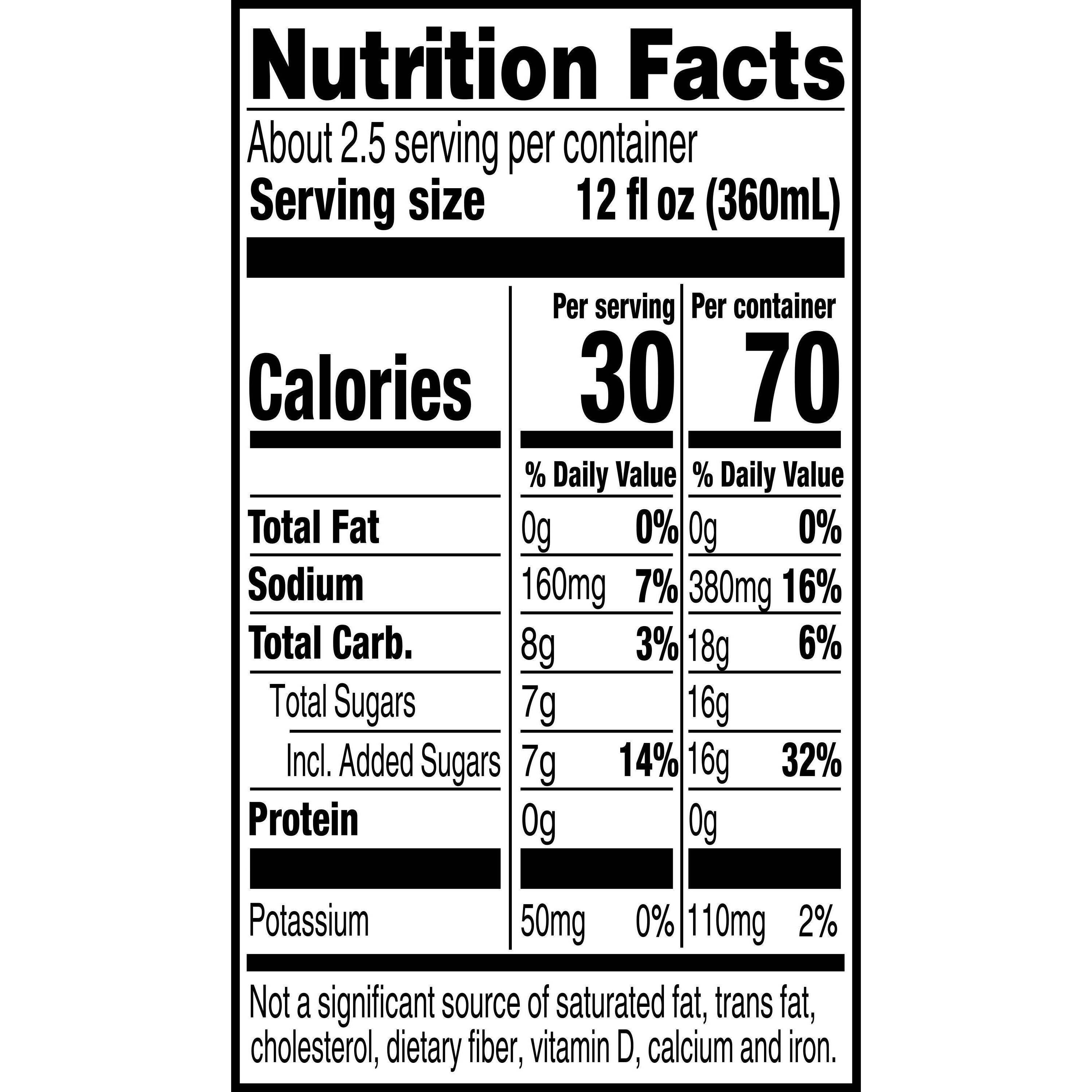 Ingredients: Water, sugar, citric acid, natural flavor, sodium citrate, salt, monopotassium phosphate, sucralose, acesulfame potassium, blue 1.