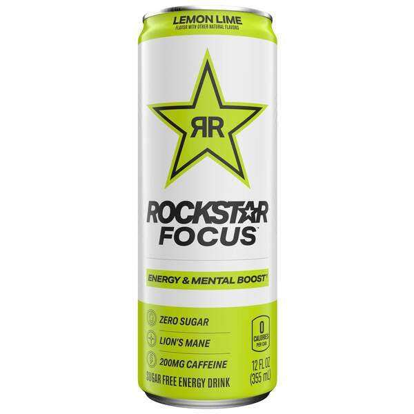 Rockstar Focus Lemon Lime 12oz Sleek Can, 12 Per Case